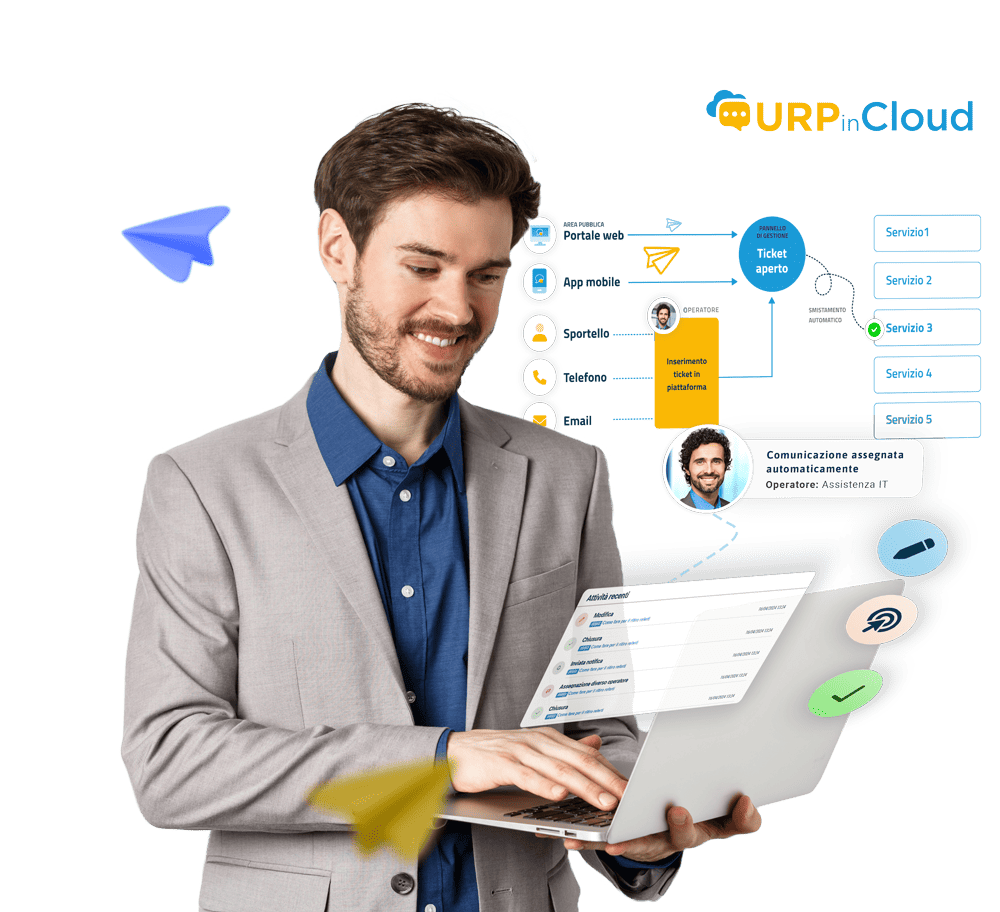 URP in cloud ti consente di ricevere, smistare e gestire tutte le richieste dei Clienti e Stakeholder in un unico sistema centralizzato. Perfetto per ottimizzare il Servizio Clienti e il Customer Care, ti permette di ridurre i tempi di risposta e aumentare la soddisfazione degli utenti.